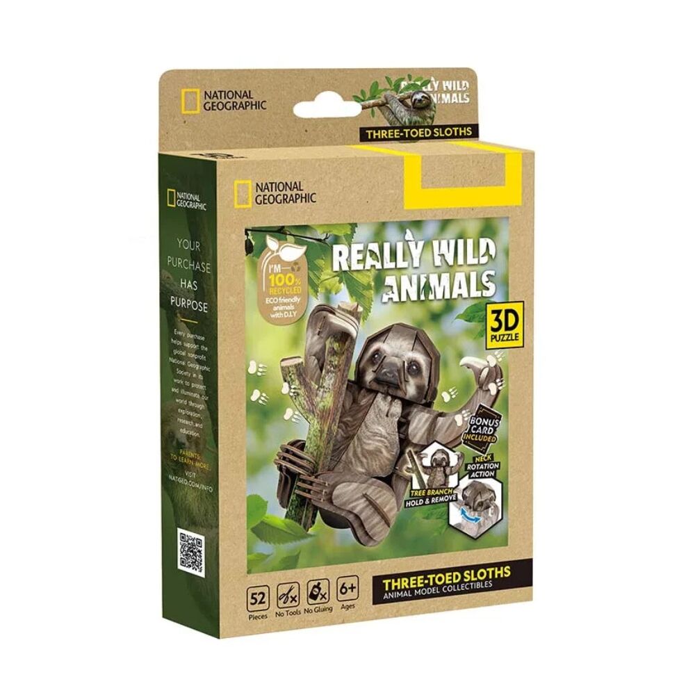 Immerse yourself in the tranquility of the rainforest and piece together one of the most peaceful animals on the planet with the National Geographic Three-Toed Sloth 3D Puzzle.